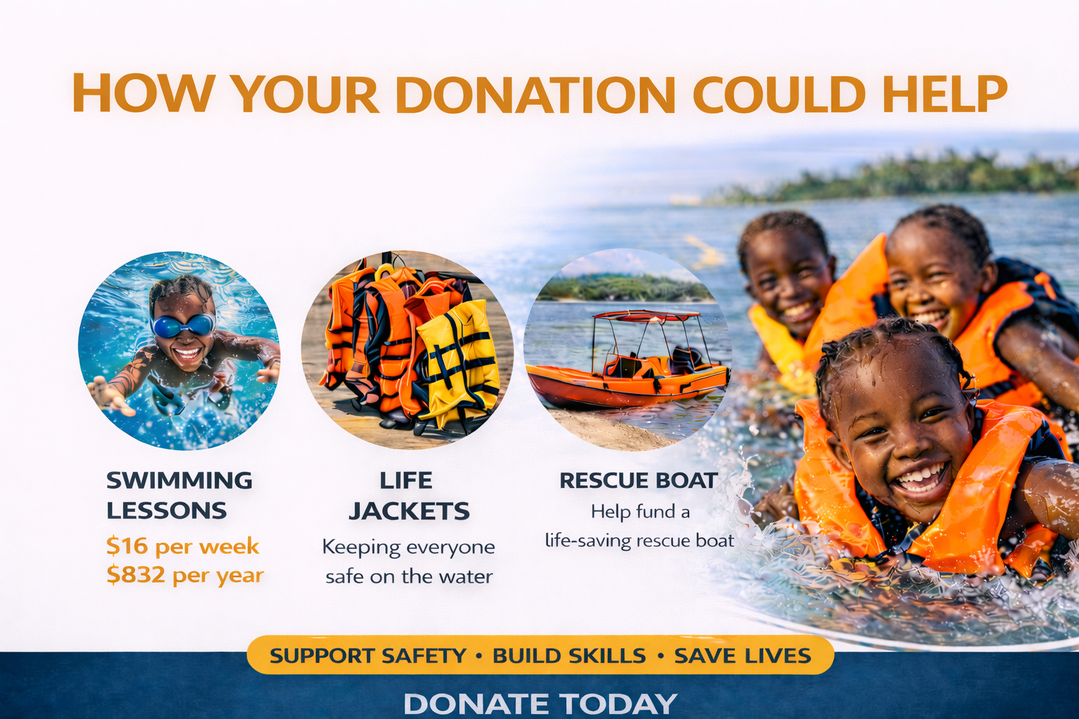 Every donation helps us teach swimming, provide safety equipment, and prevent drowning in African communities.